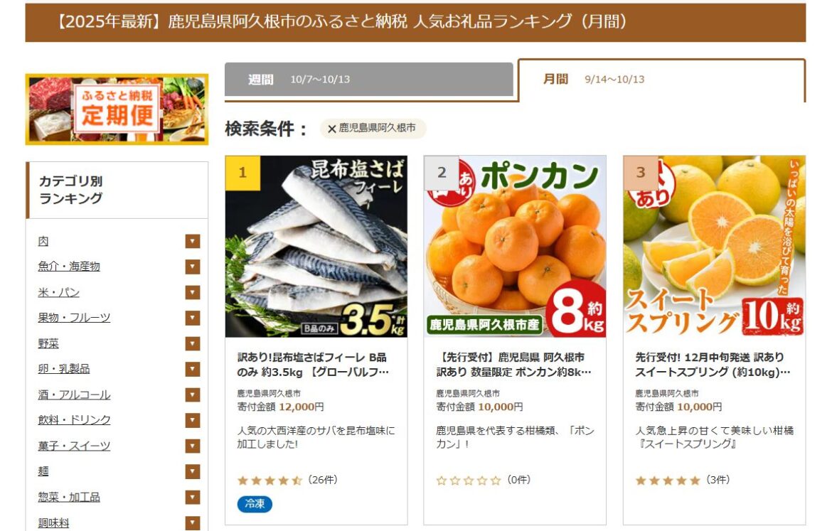 ふるさと納税サイト「さとふる」によると、以下のランキング結果でした 。