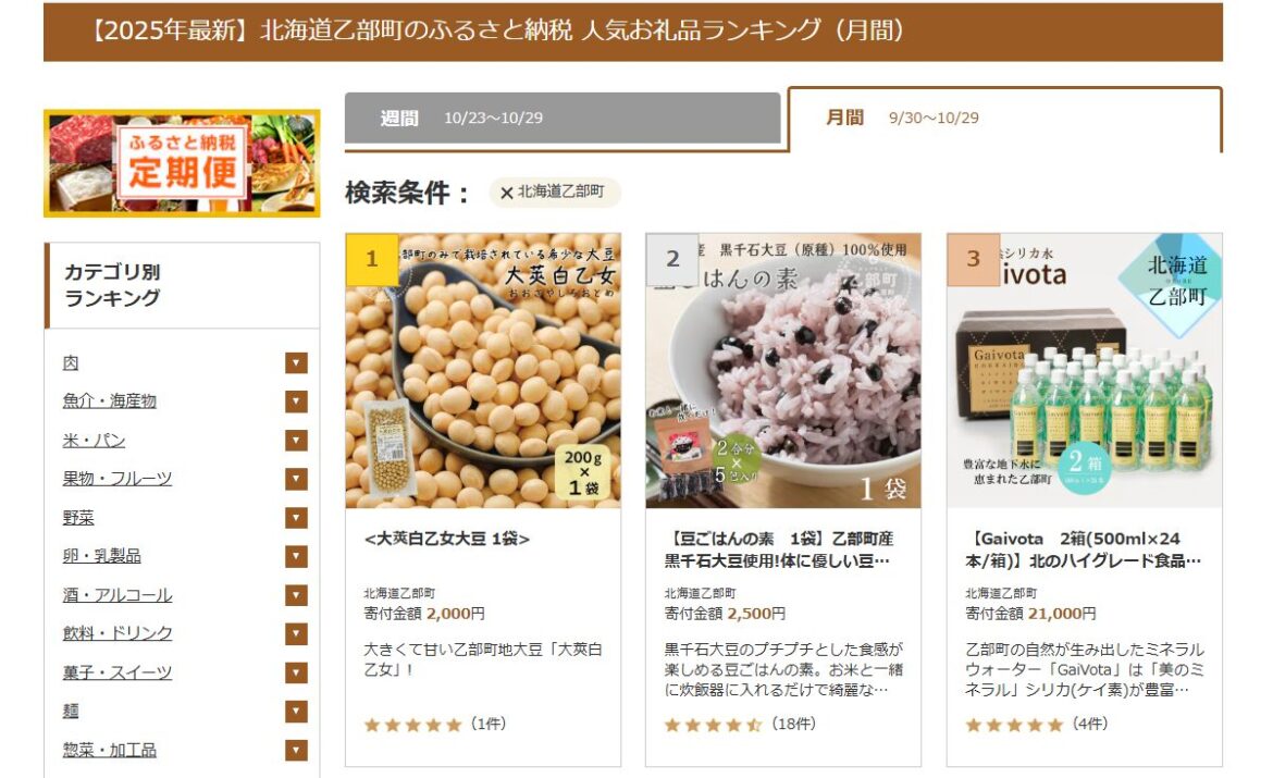 北海道乙部町ならではの特産品の数々。味わい深い返礼品と共に、地域支援の喜びをお届けします。