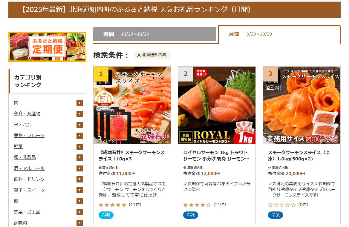 ふるさと納税サイト「さとふる」によると、以下のランキング結果でした。