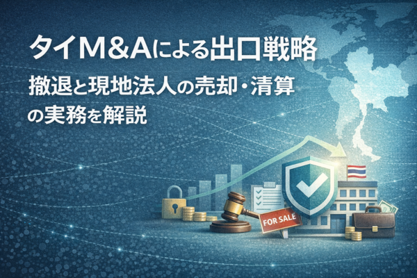 タイでのM&Aによる撤退とは、株式譲渡や事業譲渡を通じて現地事業から戦略的にイグジットする手法です。本記事では、清算との比較や税務・法務リスク、コストの違いを専門家が解説し、最適な撤退戦略の立…