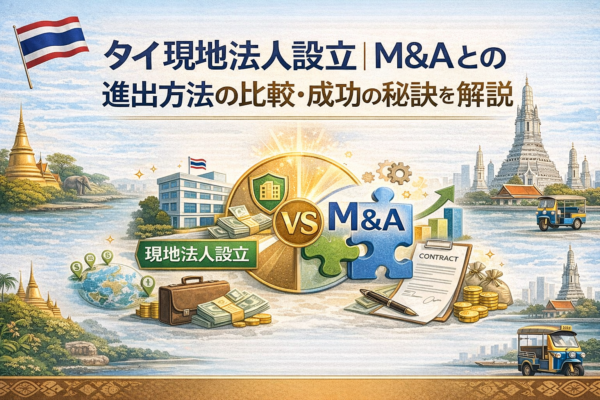 タイにおけるM&Aと現地法人設立の比較では、スピードを優先するなら買収、自社独自の統制を重視するなら新規設立を選ぶのが基本です。この記事では、コストやリスク、人材確保などの観点から両手法を徹底…
